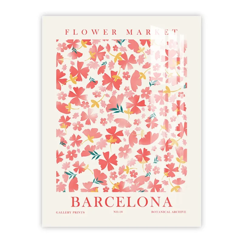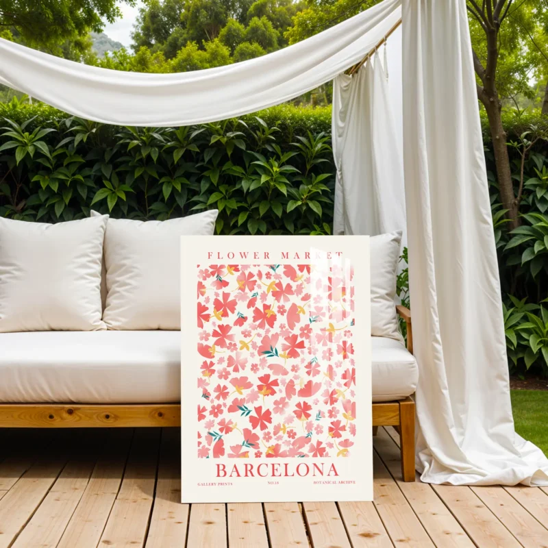 Flower Market Barcelona Wall Art | Vintage Botanical Print with Pink Floral Design