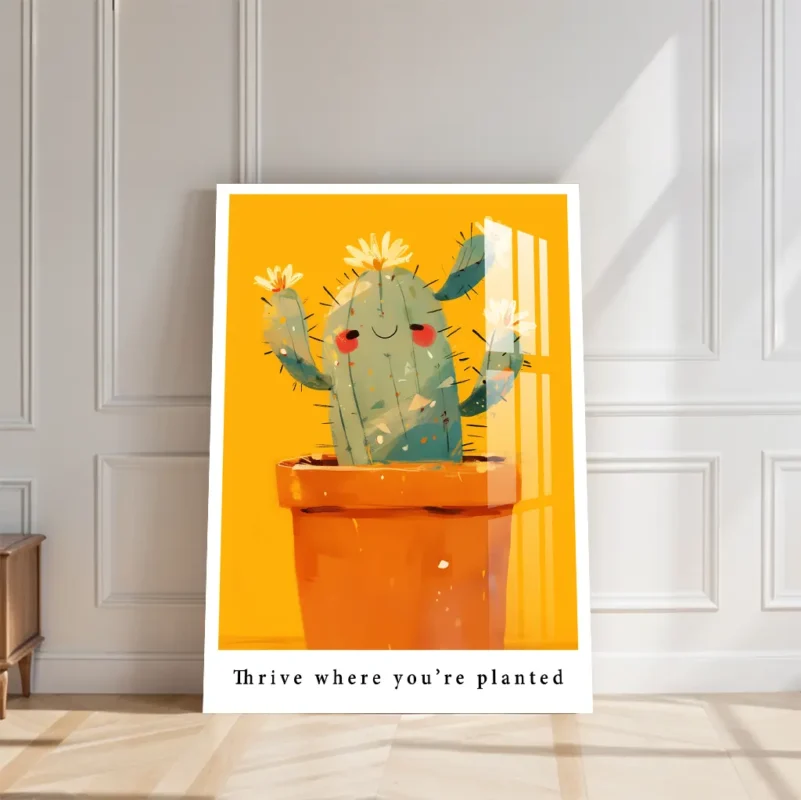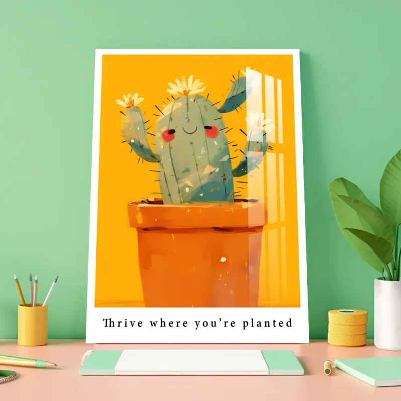 Smiling Cactus Wall Art – Motivational Art: Thrive Where You’re Planted