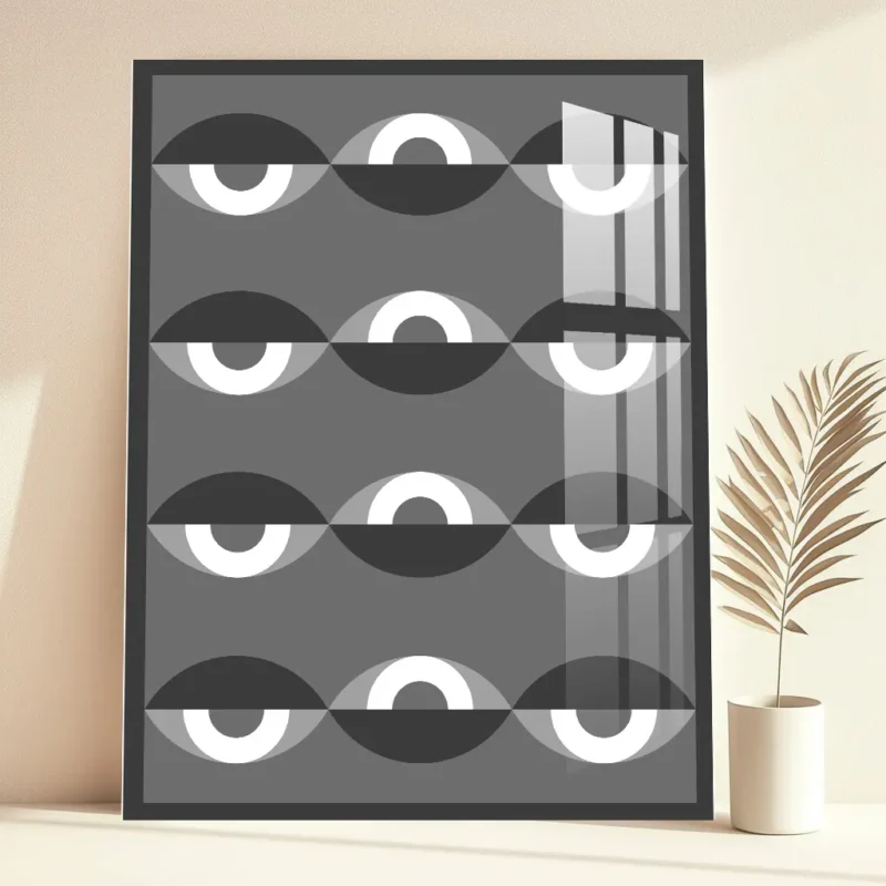 Monochrome Geometric Eyes – Bauhaus Inspired Metal Poster