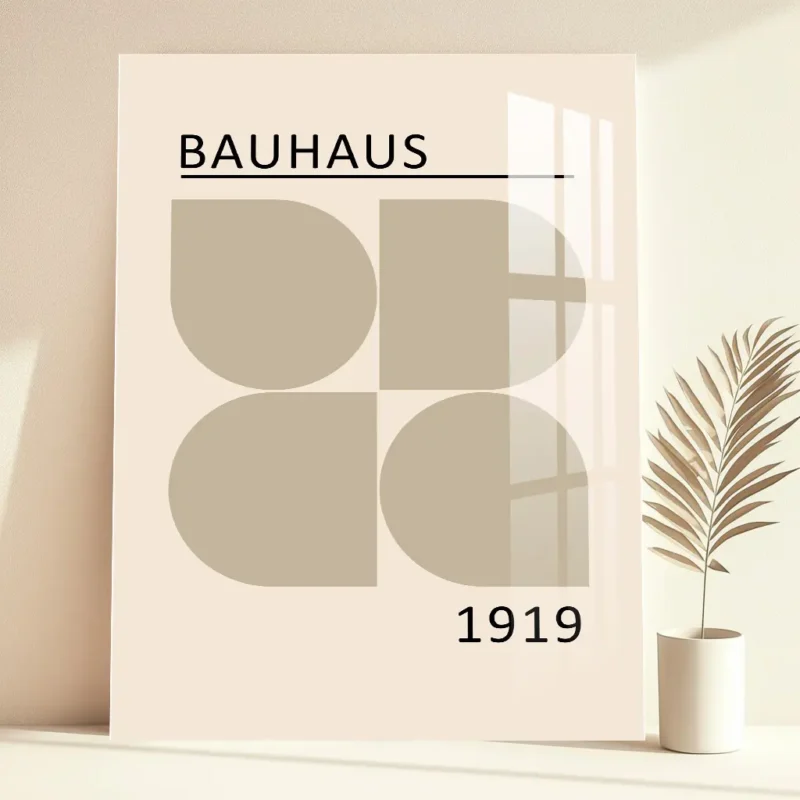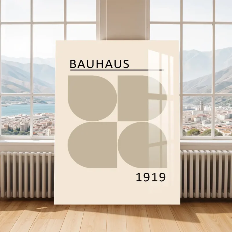 Bauhaus Beige Geometric Shapes Metal Poster – Elegant Modern Decor