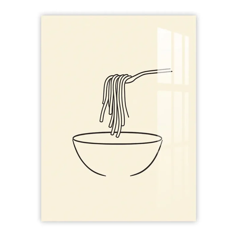 Minimalist Spaghetti Bowl Line Art – Modern Metal Poster for Kitchen Decor