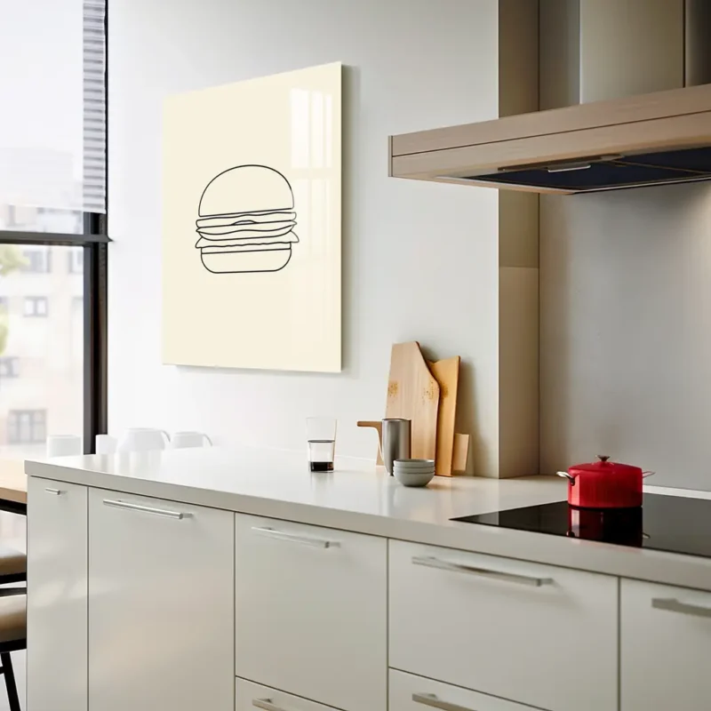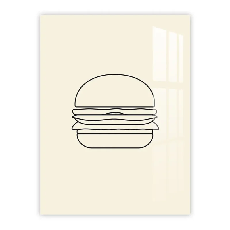 Minimalist Burger Line Art – Modern Metal Poster for Kitchen and Dining Decor