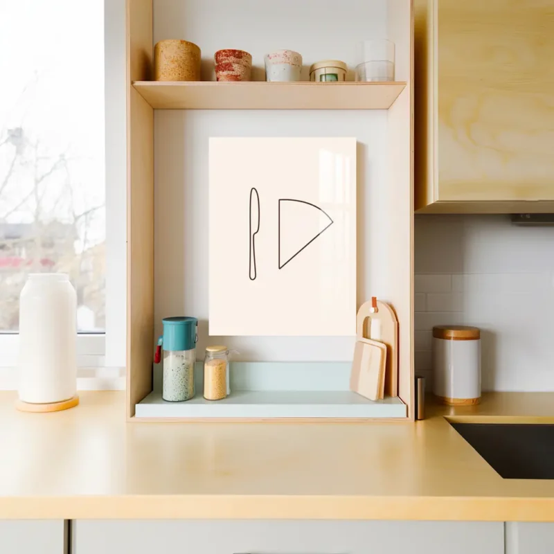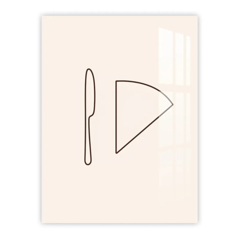 Minimalist Cheese & Knife Line Art – Elegant Kitchen Metal Poster