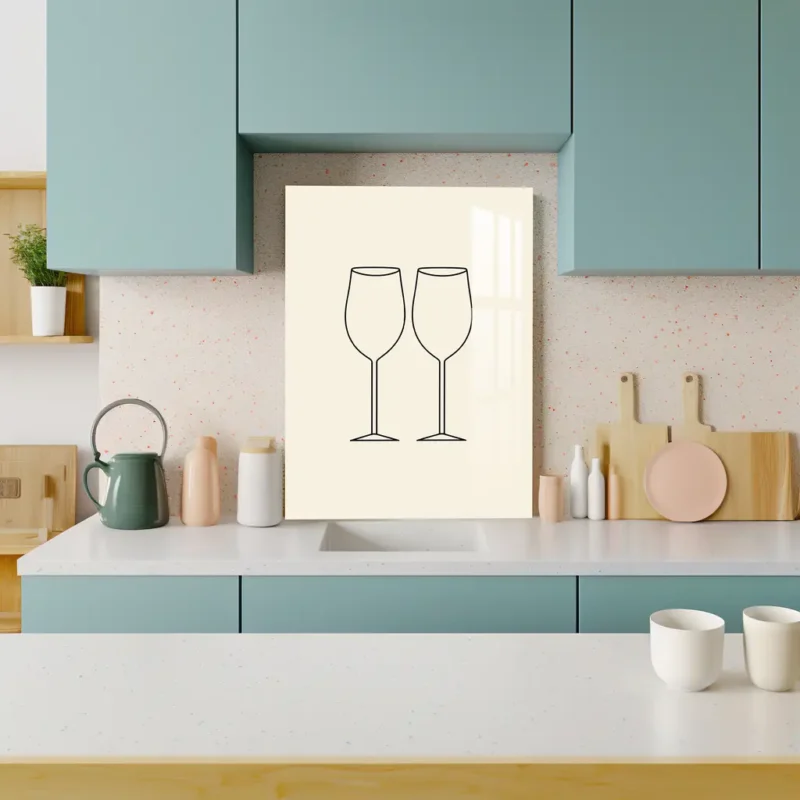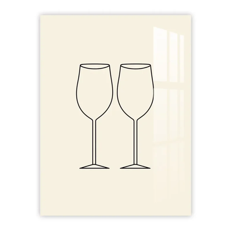 Minimalist Wine Glass Pair Line Art – Elegant Kitchen Metal Poster