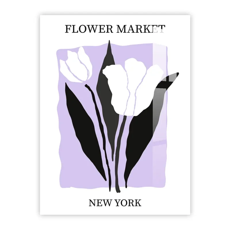 Retro Flower Market New York Metal Poster – Minimalist Floral Wall Art in Pastel Lavender