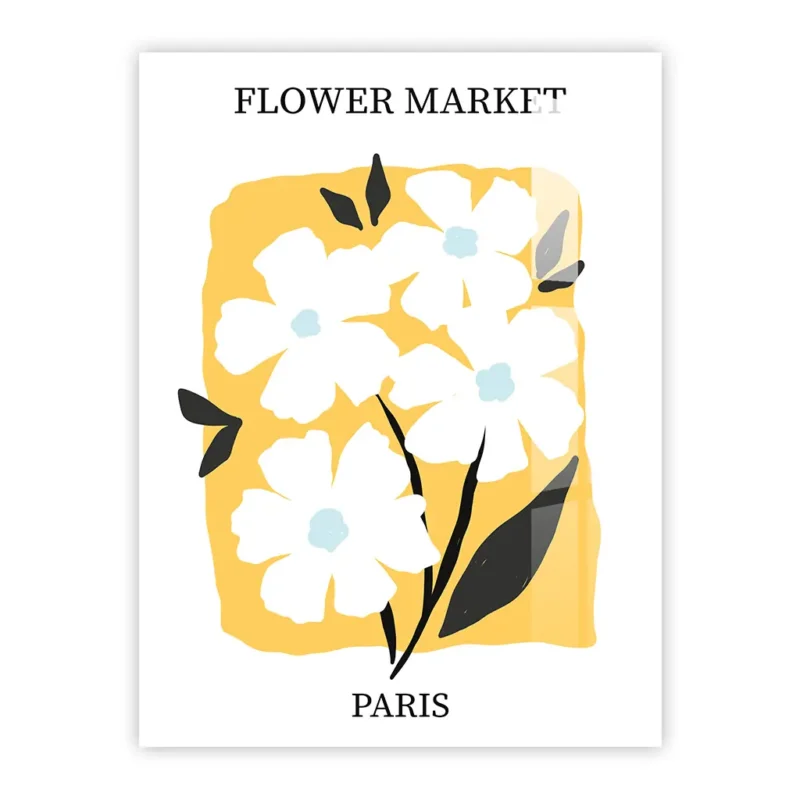Retro Flower Market Paris Metal Poster – Minimalist Floral Wall Art in Soft Yellow