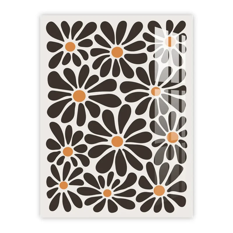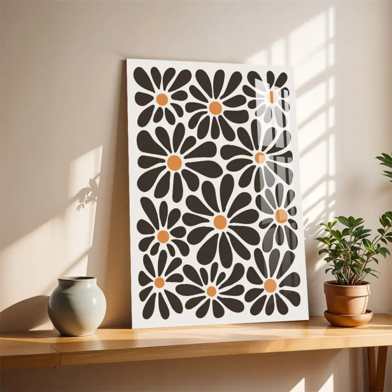 Retro Black and Orange Daisy Pattern Metal Poster – Vintage Floral Wall Art