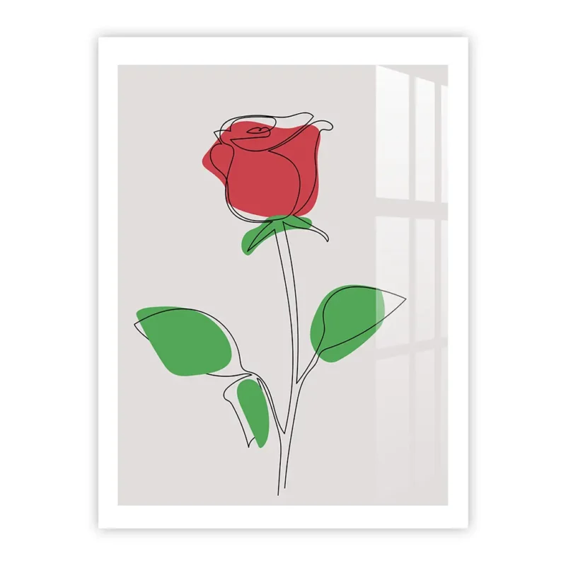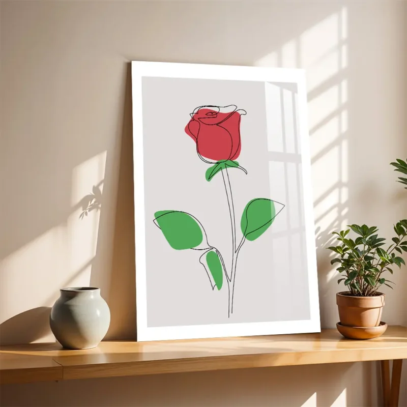 Minimalist Red Rose Line Art Metal Poster – Elegant Single Line Floral Wall Decor