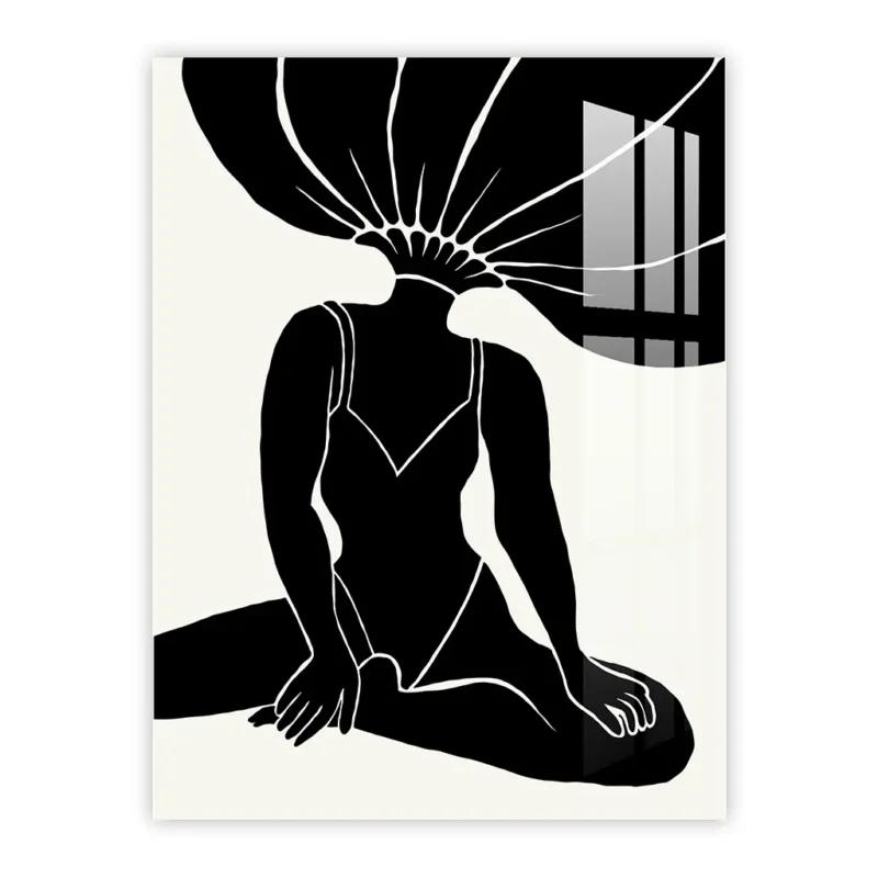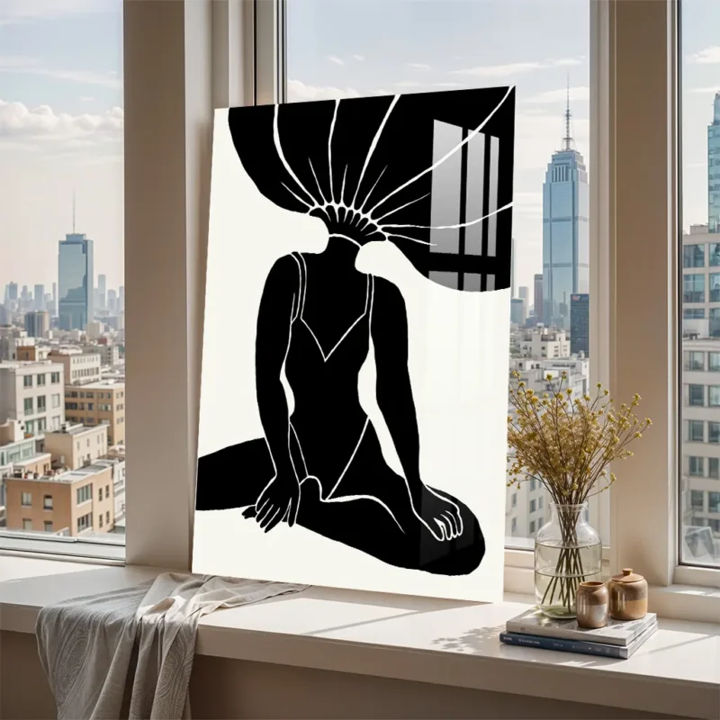 Surreal Floral-Head Figure – Black and White Abstract Metal Art Poster