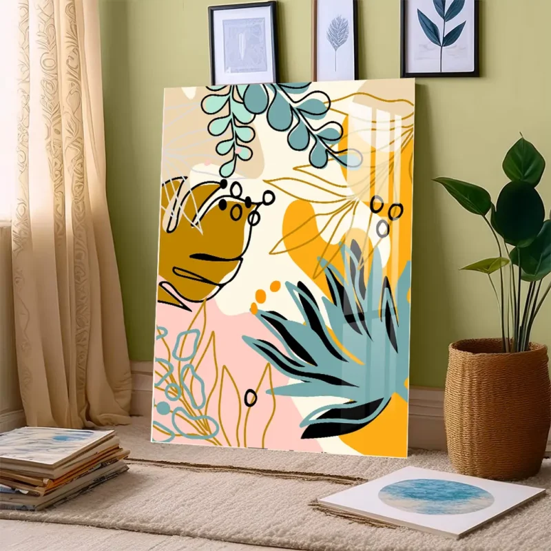 Vibrant Botanical Abstract Art – Modern Metal Wall Art with Bold Shapes and Colors
