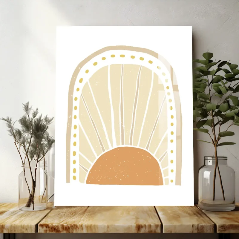 Earthy Boho Abstract Art – Minimalist Arches and Sun Metal Poster